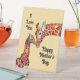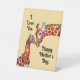 Sweet picture of a mother giraffe and her baby, is featured on this pedestal sign for Mother's Day. With message, "I Love You, Happy Mother's Day", in black lettering. A special sign to give Mom on her day that will last longer then just a card!