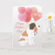 Mother's Day Love from your Saint Bernard Dog Card celebrates the unconditional love of your dog for his dog mom. This happy Saint Bernard Dog is bringing you a colorful bunch of balloons with a special heart balloon and a pretty pink flower in his mouth. This hand painted water color design is set on a soft gray gradient background to pop the white on many of the dogs in this collection. The inside of the card has the "mom" balloon on the left side and a message, flower and a dog's name.All of the text is editable, by using the edit button. Change the message if you like and please remember to change the dog's name on the inside. This card is also a great idea for your friends who have four-legged children. You will find over 30 breeds on these cards in our HAPPY MOTHERS DAY WISHES FROM YOUR DOG COLLECTION.