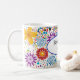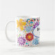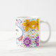 This ceramic coffee mug is shown with a lovely bright coloured floral print design with a message for Mom..