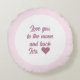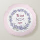 Mother's day round pillow with a purple flower wreath, pink and white. Easily personalize the text on both sides or leave some of it blank. - Kate Eden Art