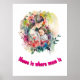 Mother's Day poster with illustration of a mom with her brightly coloured child, surrounded by elegant roses