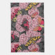 Moths on pink hydrangea kitchen towel