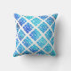 Clé tribale géométrique et coussin à motifs découpés en angle dans des tons d'aquarelle bleu clair et blanc. Conçu par Sarah Trett. Très bien situé dans une chambre, un salon ou un salon de jardin.