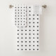 Ajoutez un accent classique à votre salle de bain avec un élégant ensemble de serviettes sur mesure comprenant un linge de toilette, une serviette de bain et une serviette de bain avec des pois noirs sur un arrière - plan blanc. Achetez le set complet ou n'importe quel morceau. Pour voir le motif géométrique de conception sur d'autres éléments, cliquez sur le lien "Rocklawn Arts". numériquement créé une image. Copyright ©Claire E. Skinner. Tous droits réservés.