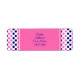 Pointe bleu marine et rose chaud. Alternant pois bleu marine et rose chaud.