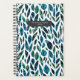 Motif feuille bleu et vert d'aquarelle. Personnalisez le nom à l'intérieur du rectangle gris à l'avant.