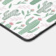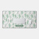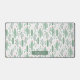 Empreinte botanique de cactus avec une variété de cactus fleuris, avec de jolies fleurs en chute et feuilles composés. Mets sur blanc. Personnalisez avec votre nom ou message en texte blanc sur vert.