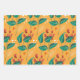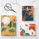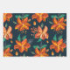 Bright floral berry moderne et vert feuille botanique motif d'emballage feuilles de papier dans les couleurs rouge jaune orange marine.