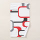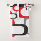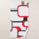 Une serviette de bain amusante de style rétro avec une motif de carré cool faite en rouge, noir, gris et blanc.