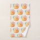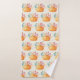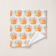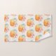 Serviette de bain illustrée d'un motif extensible d'une aquarelle illustrant un citrouille orange décoré de feuilles et de sprigs d'automne colorés.