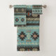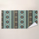 Le motif d'inspiration autochtone américaine/tribale présente des motifs géométriques. Palette : brun, orange, bleu ciel et blanc crème.
