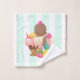 Serviette de bain sertie d'un motif d'été avec un bol de crème glacée avec 3 succulentes boules couvertes de bonbons. Un cône glacé également avec 3 boulettes de chocolat, vanille et fraise. Un bol de desserts rempli de crème glacée au goût néopolite avec une délicieuse cerise sur le dessus.