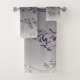 Cet élégant ensemble de serviettes de motif moderne gris rose violet rayé à feuilles florales est un ajout unique et tendance à votre décor maison.
