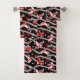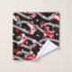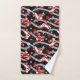 Des serviettes de bain motifs inspirées de Rockabilly retro roller skating derby. Cerises, roses, patins et dés sur un ruban gris et un délicat arrière - plan à pois de polka.