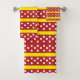 Serviettes De Bain Motif Jaune Rouge À Pointe Polka. Bandes horizontales jaunes rouges avec motif à pois blanc.