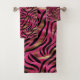 Offrez-vous un luxe audacieux grâce à l'ensemble de serviettes de bain Motif Black, Rose et Gold Zebra Stripes. Avec un mélange frappant de rayures zébrées noires et roses aux accents dorés chatoyants, cette serviette ajoute une touche féroce et glamour à votre salle de bain. Fabriquées en tissu doux et absorbant, ces serviettes offrent un confort ultime tout en vous gardant séché et confortable. Parfaits pour un usage quotidien ou comme cadeau élégant, ils apportent une touche sauvage et élégante à tout espace. Améliorez votre expérience de bain avec cet ensemble de serviettes à la mode et à déclaration faite.