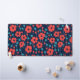 Marine Blue and Red Poppy Floral Print Motif sans couture mat