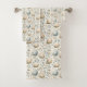 Ce kit de serviettes de bain à thème Pâques présente un charmant et délicat motif d'oeufs mouchetés niché parmi des fleurs sauvages. Le design alterne entre des oeufs doux bleus et beiges, tous ornés de petites taches, sur fond de compositions florales complexes. Les fleurs mêlent des fleurs jaunes, bleues et blanches au feuillage vert, créant une esthétique sereine et naturelle. Ce motif évoque la fraîcheur du printemps et ajoute une touche d'élégance d'inspiration nature à tout décor de salle de bain, ce qui en fait un lieu de séjour idéal pour fêter la saison de Pâques.