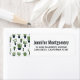 Étiquettes de adresse à la saveur occidentale rustique. Conçu avec un tas de cactus verts mignons dans un motif extensible. Plus précisément, des cactus épineux de couleur verte, de toutes sortes de formes et de tailles, chacun assis dans son propre pot de fleurs bleu foncé. Des petits triangles décoratifs entre eux. Illustration de fantaisie.