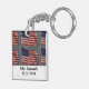Personnalisez ce porte - clé avec le nom et la date spéciale de votre choix. Convient pour l'anniversaire, l'anniversaire, les événements spéciaux et les mémoriaux, etc. Il porte le drapeau rouge, blanc et bleu américain sur un arrière - plan flou dans un motif carrelé. Bon pour un usage quotidien, pour maison, voiture ou toute sorte de clés.