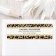 Étiquette de adresse avec une motif élégante. Des taches de léopard noir exotique sur un arrière - plan d'or. Style sauvage mais élégant. Un cadre rectangle de couleur blanche avec une fausse feuille d'or borde le dessus avec votre texte personnalisé à l'intérieur.
