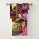 Motif en marbre couleur rose, violet et chartreuse verte, et ensemble de serviettes de bain monogramme. Ce design branché présente une motif en marbre aux bordures violettes foncées et au monogramme.