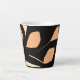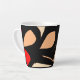Cette tasse présente de gros feuilles rose pâle et rouge sur la surface noire.