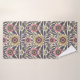 Cette serviette de bain présente des fleurs et des feuilles dans les tons rose et bleu sur un arrière - plan crème.