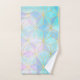Les formes géométriques des cubes sont superposées en motif et colorées dans des tons alternés de bleu pastel, rose et violet qui lui donnent un aspect de verre irisé. Les formes sont dessinées dans une parties scintillant en faux or.