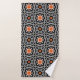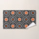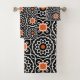 Voici l'exquis "Ensemble de serviettes de bain géométriques marocaines" - un ensemble étonnant qui combine sophistication et style. Plongez dans le luxe avec cette collection méticuleusement artisanale, ornée d'un motif captivant et sans coutures. Le design présente une fusion harmonieuse de formes géométriques blanches et oranges, élégamment disposées sur un fond noir profond. Appréciez votre expérience de baignade grâce à cet ensemble de serviettes remarquable qui dégage un charme intemporel et un charme moderne.