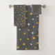 Motif moderne gris blanc jaune étoiles serviette de bain ensemble.