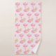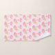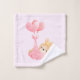 Serviette sertie avec une adorable illustration d'un petit lapin brun portant une petite couronne dorée. Porté par des ballons dans une couverture de coeur rose.