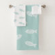 Ce kit de serviettes vous donnera un nouveau look dans votre salle de bain, c'est sûr ! Monnaie de poisson vert et blanc motif sur un arrière - plan clair, de belles couleurs contrastées.Ce sera aussi le cadeau idéal pour vos proches !