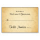 Une table mariage place la conception de la carte avec un design arrière - plan imprimé dans le style de vieux papier vintage, conçu pour ressembler à un motif faux parchemin. L'arrière - plan est un imprimé motif dans des tons beige jaunâtre / tan. Il y a du texte noir élégant qui peut être personnalisé. Carte de siège et de numéro de table pour les clients mariages.