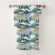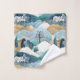 Un paysage moderne et abstrait, motif de collines blanches, aqua et or entrecoupées d'arbres verts, crée un bel ensemble de serviettes de bain design que vous aimerez.
