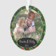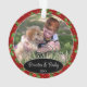 Joli ornement d'arbre de Noël de décembre avec espace pour personnaliser ou customiser avec le nom de votre famille dans une police élégante, une photo personnelle et l'année de votre choix. Avec un joli fond saisonnier à motif de feuilles de houx vertes et de baies rouges comme décoration. Un souvenir unique que vos petits-enfants, les membres de votre famille ou vos amis adoreront !