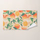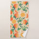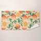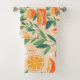 Serviette à motifs avec ambiance rétro. Un motif composé d'oranges tranchées, d'oranges entières, de feuilles verts et de fleurs blanches.