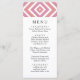 Le design géométrique rose stylisé de la carte menu convient parfaitement à un mariage corail moderne. Partie d'une collection mariage.