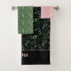 Motif vert feuille nom noir rose serviette de bain