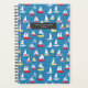 Motif avec illustration de voiliers rouges et jaunes sur arrière - plan bleu. Personnalisez le texte à l'avant.