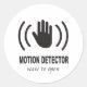 Motion Detector informational sticker for trash can or other equipment to remind people how to open it.