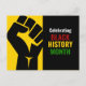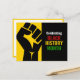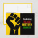 Motivational BLACK HISTORY MONTH postcard showing black raised fist graphic against a rich yellow background on the left, and CELEBRATING BLACK HISTORY MONTH in bold white, red, yellow, green typography set against a rich black background on the right. On the reverse there is a CUSTOMIZABLE greeting which you can personalize with your own wording. A great way to keep in touch over the Black History Month season. Other varieties of BHM cards, invitations, clothing and decor are available.