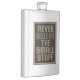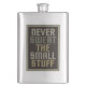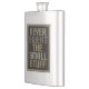 The product is a good size and came exactly as it was pictured. The lid is not attached to the flask, which could be dangerous on drunken nights... The print came out surprisingly well and looks very sharp. Would definitely recommend.