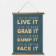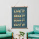 "Life is short - LIVE IT, Love is rare - GRAB IT, Anger is bad - DUMP IT, Fear is limiting - FACE IT". See my store for items with this design.