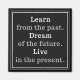 “Learn from the past. Dream of the future. Live in the present.” You can customize the background colour to be any colour you wish.