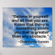 Motivational Believe in Yourself inspirational quote Christian Larson typography poster. With bright blue cloudy sky background. Reads Believe in yourself and all that you are. Know that there is something inside you that is greater than any obstacle. Motivational quote to empower anyone. Encouraging gift for graduates and for anyone who wants to achieve a goal and needs self-confidence. Hang this positive affirmation hanging on the wall to motivate and encourage willpower for any dream or goal. Great idea to help keep a new year's resolution, too. This words of wisdom design is available on many other products in our Zazzle store. Several other attitude sayings and inspirational quotes are also available.