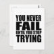 You can add some originality to your wardrobe collection with this " you never fail until you stop trying" text design with awesome typography font lettering, is a great gift idea for men, women, husbands, wife girlfriend, and a boyfriend who will love this unique motivation and inspirational saying artwork. The best amazing short positive sayings present for your wisdom collection. If you like this artwork, you can check out other similar designs and options.