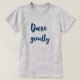 Dare greatly. Inspirational and motivational quote on a t-shirt. Cursive script typography in blue.