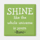 A motivational quote magnet with Rumi's inspirational words"Shine like the whole universe is yours". The green colour background is the latest 2017 home decor colour.You can also customize the background colour to your own choice .