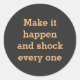 ‘‘Make it happen and shock every one’ simple elegant and inspirational quote with simple text on classic round sticker . it is fully customizable you can change it as per your choice